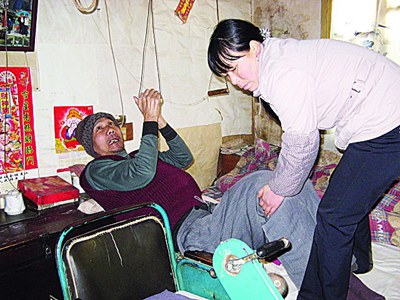 索海存老人說:“自從菊會嫁入我家,吃喝拉撒全靠她。每隔幾十分鐘我就會不由自主地抽風(fēng),菊會就不停地給我拉腿、壓胳膊。躺在床上時間一長不舒服,菊會還要不時地扶我坐一會……”