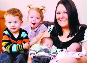 英國(guó)樸次茅斯市22歲母親卡莉·奧布賴恩和28歲男友約翰·格朗特在一起生活時(shí),為了避孕她幾乎每天都堅(jiān)持服用避孕藥。可令卡莉做夢(mèng)也沒(méi)想到的是,避孕藥非但對(duì)她毫無(wú)效果,并且她還在兩年時(shí)間中接連生下了兩組可愛(ài)的雙胞胎!