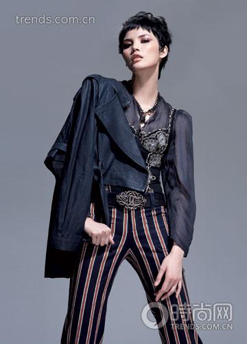 英式的褲裝搭配方式,添加古典繡花內衣,外面加件皮衣便可出行。