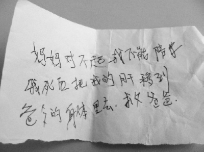 令崔女士怎么也沒(méi)有想到的是,1月24日中午12點(diǎn)半左右,當(dāng)她從醫(yī)院回到家,卻發(fā)現(xiàn)自家大門(mén)被反鎖了,“我只好從后院翻墻進(jìn)去,看到女兒躺在床上一動(dòng)不動(dòng),就像死了,旁邊有兩個(gè)安眠藥空瓶和一張遺書(shū),上面寫(xiě)著‘?huà)寢寣?duì)不起,我不能陪你,我死后把我的肝移到爸爸的身體里去,救爸爸!贝夼款D時(shí)覺(jué)得天旋地轉(zhuǎn),“這兩瓶安眠藥有200粒。∨畠菏23日傍晚五點(diǎn)多在醫(yī)院吃過(guò)晚飯回家的,到我發(fā)現(xiàn)的時(shí)候,有十多個(gè)小時(shí)了!
