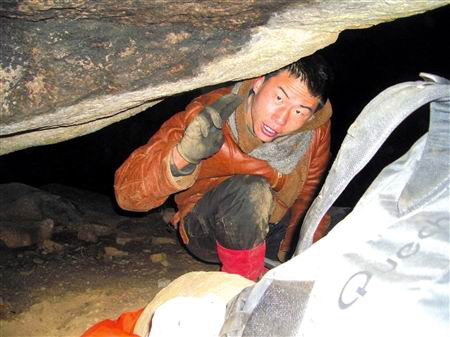 那個夜晚是最冷的一晚,海拔有4000多米,沒有水喝,沒有柴火,沒有辦法生火,我們就在洞里堅持了一晚。但是那個埡口的雪并不深。遇到懸崖主要是最后的三天,由于地震,到處都是塌方,根本無路可走,有時候爬到半山腰,而前面又是懸崖,只有用繩子降下去,最后不得不跳河。