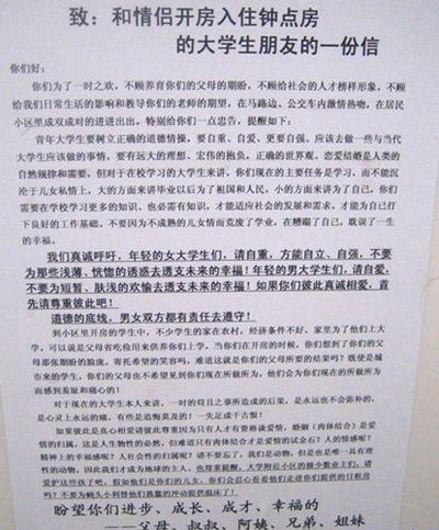 致:和情侶開(kāi)房入住鐘點(diǎn)房的大學(xué)生朋友的一封信
