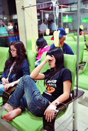 據(jù)了解,中毒的14人為老鄉(xiāng)關(guān)系,均來自福建閩中,部分人已在廣州工作多年,其中有不少穿著打扮時(shí)髦的靚女。事發(fā)時(shí)為下午16時(shí)許,當(dāng)時(shí)大家一起在粵墾路一位名叫耿宗文的人家中聚餐。正在打點(diǎn)滴的耿宗文對(duì)記者說:“我們聚餐共有14人,主要是慶祝金融危機(jī)下新來的老鄉(xiāng)找到工作。當(dāng)時(shí)大家為了節(jié)約成本,就由我的一名親戚去附近一家農(nóng)貿(mào)市場(chǎng)買菜,然后來我家做飯,本來吃得很高興,沒想到吃完不到10分鐘,就全部開始出現(xiàn)腹瀉、頭暈癥狀,隨后大家集體搶廁所,我們隨后打電話給110求救!睋(jù)了解,當(dāng)時(shí)吃完飯大概在17時(shí)許,吃的飯菜有酸菜魚、豆腐、豬肝、芹菜、西紅柿蛋湯、咸魚、蝦干、米飯!斑@些菜吃的時(shí)候沒有任何異味,不知道是哪道菜出了問題。”旁邊正在嘔吐的鄧先英對(duì)記者說。