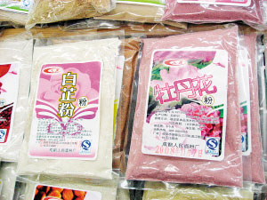 些敷臉的粉末不在護膚品分類中出現(xiàn),而是在超市的面粉區(qū)域銷售,也有近百種之多,將水果、蔬菜以及堅果的提取物同面粉結合,這樣的粉可以用溫水調和,用小火或微波爐煮制食用,也可以加蛋清或蜂蜜敷臉,其實喜歡DIY面膜的女士們一定知道,用蛋黃混合面粉而成的面膜薄薄地涂在臉上,可滋潤皮膚。只不過現(xiàn)在我們食用的面粉可以用這些特殊的面粉代替了,會有更多的功效在里面,比如美白、抗敏、排毒等功效?蛇x擇的有杏仁粉、枸杞粉、玫瑰花粉、苦瓜粉、淮山粉、薏仁粉、檸檬粉、蘆薈粉、白芷粉、紅豆粉、綠豆粉、杜鵑花粉、黑木耳粉、荷葉粉等等。70克一小袋兒要花費近17元,顯然敷臉比食用更劃算些。(文/攝 孫小雅)