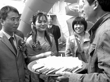 楊宏偉告訴記者,相對于形式,他更看重的是內涵。“現(xiàn)在的婚禮往往想方設法請來眾多高級轎車,然后在豪華賓館擺上若干桌酒席,請親朋好友來吃一頓,既鋪張浪費又沒多大意義,還不如辦得簡單些,用節(jié)約下來的錢做些更有意義的事。”楊宏偉說,他將這個想法告訴妻子和父母后,得到他們的支持。