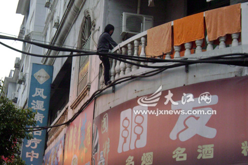 記者李桂明攝影報道:26日18時許,一名女子因遭到男友冤枉,一時想不開爬上了萍鄉(xiāng)玉溪賓館三樓陽臺外墻上跳樓。經(jīng)過民警勸導,30分鐘后,該女子放棄了輕生念頭。