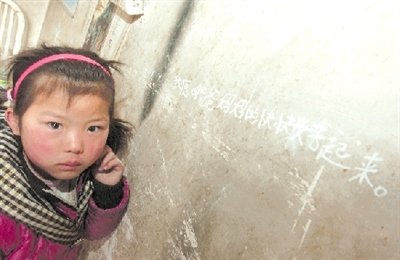 7歲姑娘拿起粉筆墻上寫心聲