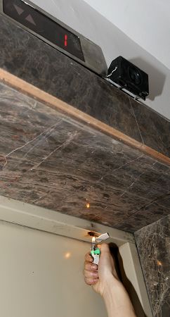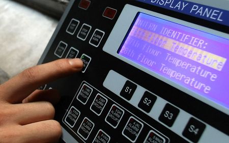 在昨日的試驗中,工作人員在26層電梯門上方的煙感器附近點燃打火機,當(dāng)溫度超過58℃后,樓道內(nèi)的語音報警響起,“各位業(yè)主,本樓層發(fā)生火災(zāi),請不要驚慌,本樓層電梯暫時停止使用,請業(yè)主改乘其他樓層的電梯疏散!彪S即,26層的電梯按鈕“失靈”,其他樓層電梯仍正常運行。