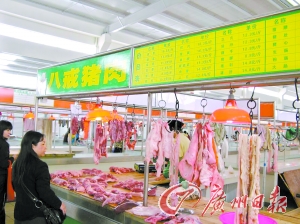接到讀者報(bào)料后,記者昨天上午,來到大良府又菜市場與現(xiàn)代街市兩個(gè)市場進(jìn)行調(diào)查。在府又菜市場記者一眼看到標(biāo)有“八戒豬肉”牌子的豬肉檔,20多市民正在排隊(duì)等購。該檔的男檔主說,他的檔口每天可賣出2頭中等重的生豬。
