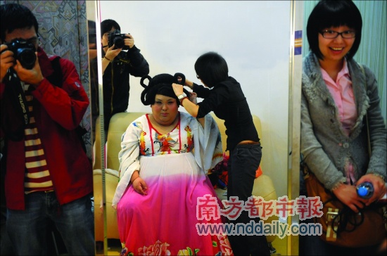 光梳妝打扮,林思思花了一個(gè)多小時(shí)。盤上發(fā)髻,插上金簪,披起拖地長裙,秋波流轉(zhuǎn),“我漂亮嗎?”沒人敢否認(rèn),歷練多年后,這個(gè)28歲的重慶小伙反串楊貴妃頗有一手。他卻要折騰,昨日,他來到深圳和鵬程醫(yī)院一同面對媒體,宣布將接受整形,今后以“沈殿霞”形象示人。