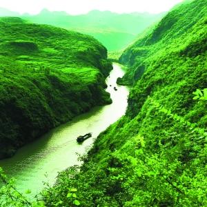 地下河景區(qū)里的云南梯田、微縮長(zhǎng)城、洞中黃果樹等景點(diǎn)令人嘆為觀止。撐船在溶洞暗河里穿行,遠(yuǎn)遠(yuǎn)地就聽見轟隆隆的水流聲,舉目四望,卻見不到一丁點(diǎn)水花,拐了幾個(gè)彎之后,一簾瀑布傾瀉而下,帶來(lái)意外的驚喜。大自然以其鬼斧神工把中國(guó)自然山水與人文建筑的精華濃縮得惟妙惟肖,然后又以乾坤大挪移的手法把它們都囊括到這個(gè)溶洞之中,其中究竟,怎一個(gè)“奇”字了得?