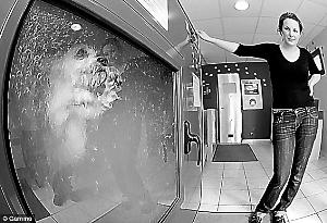 據(jù)英國(guó)《每日郵報(bào)》5月16日?qǐng)?bào)道,現(xiàn)年31歲的法國(guó)人羅曼·雅里發(fā)明的這種自動(dòng)洗狗機(jī)類似一個(gè)迷你洗車房,主人只需選定洗滌方式和寵物狗的大小尺寸,按下“開(kāi)始鍵”后機(jī)器就會(huì)自動(dòng)完成浸濕、沖洗和烘干等一系列過(guò)程。根據(jù)狗的大小費(fèi)用也不同,小狗只需13英鎊,中等大小的狗狗要22英鎊,體型較大的狗狗則要花31英鎊。此外,貓也可以使用這款機(jī)器,價(jià)格只需小狗的錢。
