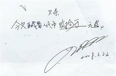 楚楚說,這張20萬欠條的簽名,有8條弧線,是雅暉的藝術簽名