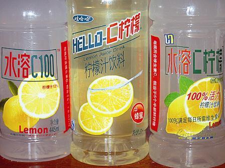 據(jù)了解,農(nóng)夫山泉于去年夏季推出了飲料新品“水溶C100”,這種透明瓶裝、包裝略顯時尚的乳白色飲料出現(xiàn)在貨架上以后,不經(jīng)意間成為一匹飲料市場的“黑馬”,廣受消費者歡迎。去年年底,娃哈哈推出的新款飲料“HELLO-C”檸檬飲料,以健康和補充維C為賣點,和“水溶C100”有異曲同工之妙。見此類飲料熱賣,不少商家也想分一杯羹。