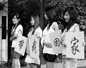 這幾名女孩手舉著“帶我回家”的牌子,為婚介網(wǎng)做秀
