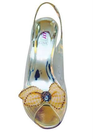 透明金色蝴蝶結涼鞋(GNC,528元)這雙今年流行的透明復古涼鞋,總讓人忍不住想起小時候的膠鞋,但這顯然很對獅子女的胃口,就是要把看似廉價的東西穿出時尚感來。