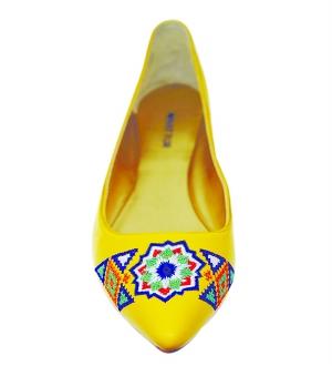黃色刺繡圖案平底船鞋(WHAT FOR,680元)刺繡的圖案很精致,能讓巨蟹想到家里靠墊的圖案,滿足了她們戀家的心。