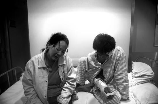 到昨日為止,兒子的搶救費(fèi)用及其丈夫的醫(yī)療費(fèi)用已超過5000元,盡管有親戚幫忙,但仍欠醫(yī)院將近一半的費(fèi)用。住不起病房,她只好把丈夫蔡學(xué)斌轉(zhuǎn)移到醫(yī)院的走廊上。