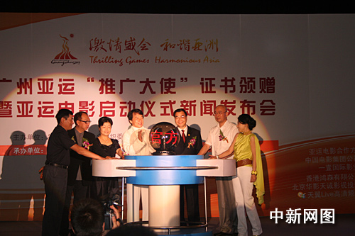 中新網6月2日電 6月1日,第16屆廣州亞運會“友好推廣大使 ”證書頒贈儀式暨亞運電影新聞發(fā)布會在北京釣魚臺賓館舉行。國際著名影星成龍正式成為“亞運推廣大使”,同時,2010年廣州亞運電影項目正式啟動。