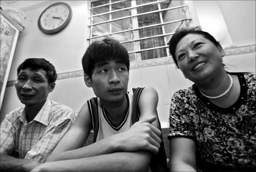 被拐兒吳志堅(中)和親生父母在廣州重逢,本報記者 霍建斌 攝