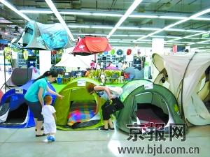 周末臨近,選擇外出避暑郊游的人們也多了起來(lái),隨之而來(lái),經(jīng)營(yíng)戶外用品,特別是帳篷的商戶也迎來(lái)了銷售高峰。尤其是拆裝容易的休閑帳篷,更是受人青睞。 (記者甘南攝)