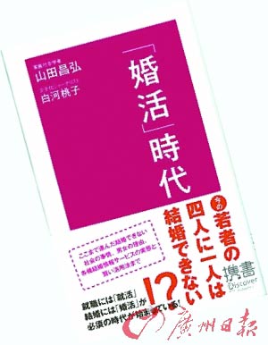 《“婚活”時代》由社會學(xué)家山田昌弘和記者白河桃子合著,去年初一上市即售出17萬冊。這兩名作者把日語“婚姻”和“活動”兩詞合成“婚活”一詞,意為一切與結(jié)婚相關(guān)的活動。他們鼓勵未婚青年主動出擊,因為坐等意中人出現(xiàn)遠(yuǎn)遠(yuǎn)不夠。