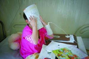 丹丹見到鏡頭馬上用書將臉遮擋起來(lái)。5歲女童丹丹被確診為急性重型再生障礙性貧血,入住北京道培醫(yī)院準(zhǔn)備骨髓移植。到昨日為止,她的父母已經(jīng)“消失”9天了。本報(bào)記者 吳江 攝