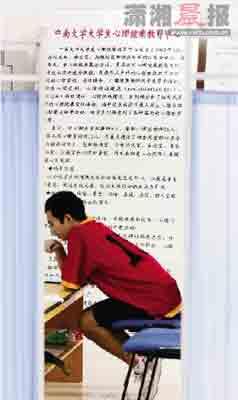 9月9日下午,中南大學迎新總站,心理健康教育中心的宣傳標語非常醒目,大學生的心理健康越來越受到重視。圖/記者殷建軍