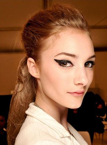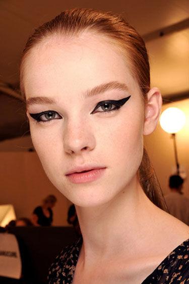 你所能看到的這種,線(xiàn)條干凈、輪廓分明、顏色飽和濃重、在眼角舒展上揚(yáng)的黑色眼線(xiàn),屢屢登上T臺(tái),在Chanel、Dolce &Gabanna、Cavalli的模特們的臉上演繹得淋漓盡致。