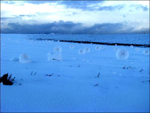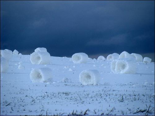 不尋常的自然現(xiàn)象很多人都有所耳聞:乳狀云、逆溫層或幻日弧等等。但是看看下面這些圖片,相信再見多識廣的人也會被嚇一跳:這些東西怎么看都像是巨無霸白色高脂蛋糕。然而事實上,它們是“雪卷”。今年3月份,提姆·特維鮑在美國愛達(dá)荷州大草原上偶爾發(fā)現(xiàn)了這些奇妙景象,并用相機(jī)拍攝下來。