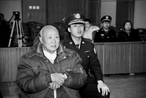 昨天上午,李某在女兒、女婿和兒媳婦的陪伴下,拄著拐杖走進法庭(如圖)!拔覍Σ黄鸨缓θ。我接受改造,從新做人!遍_庭后,他點頭承認了公訴機關的指控。