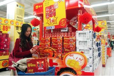 中新網(wǎng)2月9日電 春節(jié)將至,各大超市紛紛推出各種喜慶的年貨。蒙牛紅色“牛運金虎”和白色剪紙版紀(jì)念包裝牛奶,在今年的牛奶產(chǎn)品中尤為搶眼,許多消費者就是沖著大紅包裝的喜慶感和頭上頂著“!弊,寓意“牛運當(dāng)頭”的小老虎來的。業(yè)內(nèi)人士表示,除了蒙牛牛奶過硬的品質(zhì)外,產(chǎn)品中承載的“牛運文化”是其產(chǎn)品暢銷的主要原因。