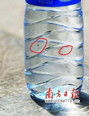 近日,有市民發(fā)現(xiàn)600毫升瓶裝的益力礦泉水內(nèi)漂浮著黑色物質(zhì),大的有小指甲般,小的需要湊近才能看清。昨日,益力礦泉水東莞片區(qū)主管向消費(fèi)者解釋說(shuō):那是水中鐵錳含量超標(biāo),喝了有益無(wú)害。但這位主管提供的水樣檢驗(yàn)報(bào)告,恰恰缺漏了消費(fèi)者發(fā)現(xiàn)有問(wèn)題的批次。