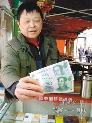王國華介紹:昨日凌晨3時許,響水橋一帶只有他的煙攤和不遠處的一家大排檔還亮著燈,其他攤點早已關(guān)門。趁著顧客少,他坐在煙攤打起盹來,“一個20多歲的小伙子把我叫醒,要買煙!蓖鯂A說,那男子滿臉通紅,一臉酒意,拿出一張50元模樣的紙幣扔在煙柜上,拿起煙柜上的玉溪轉(zhuǎn)身就走,連找補都不要。王國華覺得那男子怪怪的,一摸錢,手感不對,太軟。他立馬站起來拉住那男子衣角,然后仔細看手中的錢,“哪里是人民幣嘛,根本就是一張冥幣!