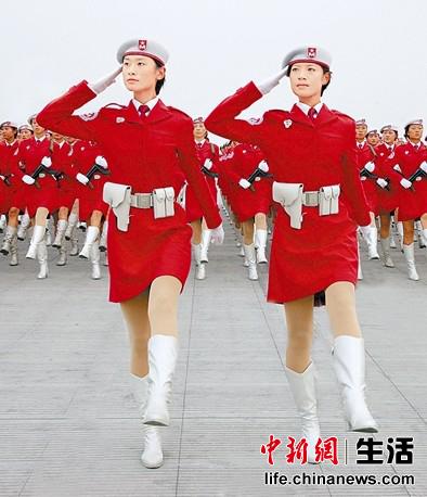 張曉菲(左)參加國(guó)慶60周年閱兵式