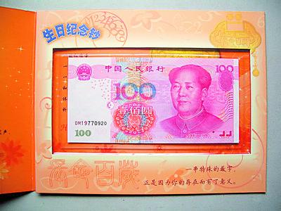 記者在淘寶網(wǎng)上搜索“生日鈔”關(guān)鍵字,出現(xiàn)了近300個(gè)搜索結(jié)果,其中浙江、上海、北京、廣州的賣家都有。記者打開一家網(wǎng)店,展示這些不同面值的紙幣,紙幣編號(hào)清晰地拍攝出來,都是可以與年月日相對(duì)應(yīng)的號(hào)碼。該網(wǎng)店還特別打出廣告,“一億張紙幣中,號(hào)碼與你生日相同的只有一張,概率比中500萬元彩票還要難10倍。”