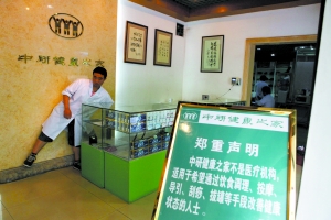 5月20日,中國中醫(yī)科學(xué)院東側(cè),中研健康之家內(nèi)掛著一個牌匾,上面寫著“中研健康之家不是醫(yī)療機(jī)構(gòu),適用于希望通過飲食調(diào)理、按摩、導(dǎo)引、刮痧、拔罐等手段改善健康狀態(tài)的人士!