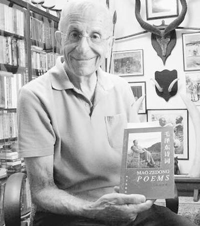 武大衛(wèi)展示他的藏書之一《毛澤東詩詞》,他非常喜愛這本書,在其中夾了不少筆記。本報(bào)記者 韓曉明攝