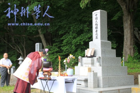 7月4日,在北海道栗山町中國勞工墓前,札幌日中友好協(xié)會會長清岡發(fā)言講述了發(fā)生在60多年前的那段歷史,講述了在北海道嚴冬里中國勞工所飽受的痛苦經(jīng)歷。隨后,劉領(lǐng)事發(fā)言講,我們不能忘記歷史,也不該忘記歷史,我們要記住這段歷史,我們要記住中國勞動人民在日本作出的犧牲,深刻地體會戰(zhàn)爭的殘酷,正確認識過去不幸的歷史,汲取歷史的教訓,絕不讓慘痛的歷史重演。日本的僧人為中國勞工殉難者鳴缽誦經(jīng),中日兩國朋友均低頭默默地為逝去的中國勞動者祈禱,祝愿他們安息。隨著陣陣的缽聲,人們的心飛到了60多年前的“角田碳礦”,看到了在大雪紛飛的北海道用雙手刨碳,雙肩扛擔受難的中國勞工。今天在中日友好團體及友人的關(guān)注與支持下,在當時他們勞動過的地方,為這些勞工立下了“中國人殉難者之墓”,讓后輩記住他們,記住歷史,記住曾經(jīng)發(fā)生的悲劇,激勵后輩熱愛和平,為了世界的和諧發(fā)展互相珍惜,互相合作支持。在祭祀儀式上,中國勞工殉難者碑前擺放著這些寫有這些勞動者名的名冊,讓我們不要忘記這些人們。