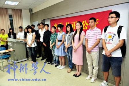 2010年9月19日,在韓中國(guó)學(xué)聯(lián)舉辦首屆以“海納百川,有容乃大”為主題的公開(kāi)納新活動(dòng),李忠輝會(huì)長(zhǎng)及學(xué)聯(lián)各部門(mén)的負(fù)責(zé)人擔(dān)任了本次公開(kāi)納新活動(dòng)的評(píng)審委員。招新工作進(jìn)行得井然有序,同學(xué)們普遍反映效果良好,呈現(xiàn)出一派生氣勃勃的新氣象。