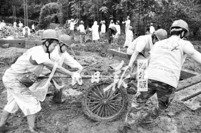 7月底的四川悶熱得很,幾乎每天的氣溫都在37攝氏度左右,即使是什么都不干,都會(huì)出汗。再加上為了避免曬傷,隊(duì)員們都穿著長(zhǎng)袖上衣和長(zhǎng)褲工作,更是熱得大汗淋漓。后來(lái),趕上3天都在下雨,為了不延誤工期,大家就穿著雨衣堅(jiān)持工作。志愿者們的想法很簡(jiǎn)單:“因?yàn)槲覀儾皇枪と,是志愿者,所以才要在雨天繼續(xù)工作,抓緊時(shí)間完成任務(wù)。我們想為在冬天來(lái)臨之前,讓更多的災(zāi)民搬出簡(jiǎn)易房,住進(jìn)新房子盡一份力!”