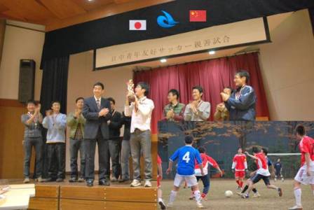 比賽之后與會的中日雙方運動員、來賓等還參加了懇親交流會并進行了深入和愉快的交流。懇親會上,多數(shù)與會的運動員表示,感謝學友會組織,今后一定要更加積極的參與學友會活動。同時,多數(shù)學友表示希望成立聯(lián)賽性質(zhì)的長期的足球交流活動。(張畢)