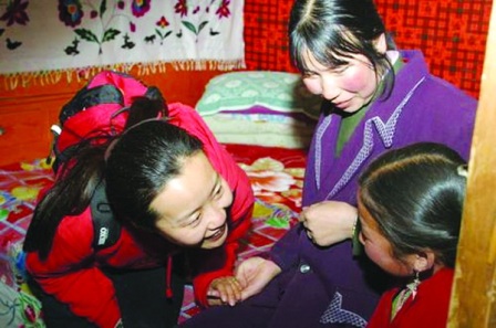 盛嘉璐沒有退縮。她克服了當(dāng)?shù)貧夂驉毫、水源不足、交通不便、通訊不暢、教學(xué)設(shè)備欠缺等各方面的困難,全身心投入教學(xué)當(dāng)中。由于教學(xué)設(shè)備的稀缺,盛嘉璐在實(shí)際教學(xué)當(dāng)中甚至把學(xué)生帶來的雞蛋、水果等各種東西搬到了課堂上。