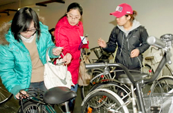 在服務(wù)項(xiàng)目的啟動(dòng)儀式上,14名分別來自中國、越南和印度尼西亞的留學(xué)生來到活動(dòng)現(xiàn)場。平和文化中心的工作人員們在啟動(dòng)儀式上搞了個(gè)別出心裁的游戲,特意請這些留學(xué)生們從事先準(zhǔn)備好的30輛自行車中,分別按照型號和顏色各選出一輛最受歡迎的車。
