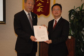 晚會(huì)進(jìn)行中,孫建明公使銜參贊向2009年度東京地區(qū)部分大學(xué)45位會(huì)長代表頒發(fā)了榮譽(yù)證書和紀(jì)念品。