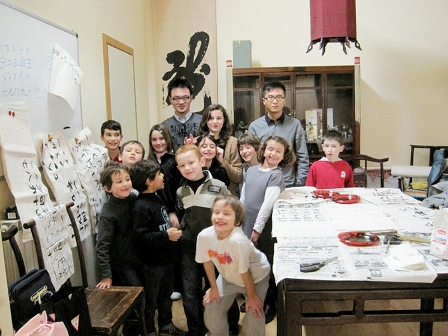 中新網(wǎng)1月20日電 據(jù)意大利《歐華聯(lián)合時(shí)報(bào)》報(bào)道,在海外弘揚(yáng)中華文化也需要“從娃娃抓起”。1月17日,佛羅倫薩中國(guó)學(xué)生學(xué)者聯(lián)誼會(huì)主席張浩以及學(xué)聯(lián)設(shè)計(jì)工作室負(fù)責(zé)人劉思遠(yuǎn)應(yīng)佛羅倫薩武術(shù)學(xué)院院長(zhǎng)GIUSEPPE邀請(qǐng),給當(dāng)?shù)貎和狭艘惶蒙鷦?dòng)的中國(guó)書(shū)法課。