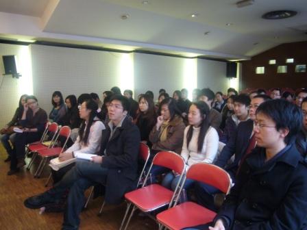 戴老師首先歡迎今年加入巴黎學(xué)聯(lián)的“新鮮血液”,并期望新成員能和老成員一起做好“計劃滿滿的2010年”的各項(xiàng)工作,我們將迎來“一個又一個戰(zhàn)役,首當(dāng)其沖便是一周以后的春晚”。由于時間緊、任務(wù)重,戴老師希望春晚將是新老成員展示自己、一起努力為新一年工作打好頭炮的最佳機(jī)會。