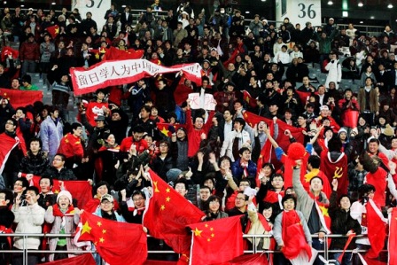 中新網(wǎng)2月11日電 據(jù)日本《中文導(dǎo)報(bào)》報(bào)道,2月10日,東亞四強(qiáng)賽進(jìn)行第二輪爭(zhēng)奪,在東京味之素體育場(chǎng)中國(guó)男足迎戰(zhàn)韓國(guó)男足,中國(guó)隊(duì)最終以3-0大勝韓國(guó)隊(duì),一舉改寫(xiě)在國(guó)際A級(jí)賽事上32年對(duì)韓不勝的尷尬歷史。看臺(tái)上約二千名中國(guó)留學(xué)生的吶喊助威聲也貫穿了整場(chǎng)比賽。