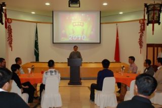 楊大使向各位留學生并通過他們向在國內(nèi)的親人致以誠摯的新春問候,介紹了國內(nèi)發(fā)展和中沙雙邊關(guān)系有關(guān)情況。楊大使表示,近年來,中國經(jīng)濟保持平穩(wěn)快速增長,社會建設(shè)取得巨大成就,國際地位不斷提升。中國已成為世界第三大經(jīng)濟體,2009年外匯儲備繼續(xù)保持世界第一,外貿(mào)出口躍居世界第一,高速公路總里程數(shù)居全球第二。繼2008年奧運會后,今年我們還將舉辦2010年上海世博會,將再次向世界展示一個發(fā)展、開放、繁榮的中國。祖國的發(fā)展讓身居海外的中華兒女感到更加自豪和驕傲。
