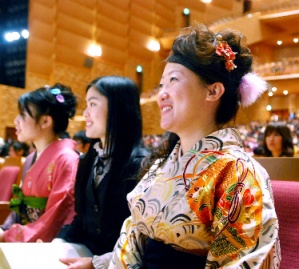 當(dāng)天畢業(yè)的有,經(jīng)濟學(xué)系的454人和研究生院經(jīng)濟學(xué)研究科的20人。侯利娟身著和服,與日本同學(xué)一起坐在最前排,以一種神圣的心情,注視著代表所有畢業(yè)生從校長那里接受學(xué)位的學(xué)生總代表的一舉一動。傾聽著主席臺上傳來的畢業(yè)賀詞,她更加感受到“不能忘記那些一直幫助自己的當(dāng)?shù)厝恕薄?/p>